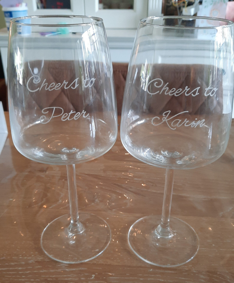 Je kan ook denken aan wijnglazen, leuk met een fles wijn erbij voor bijvoorbeeld een bruiloft.